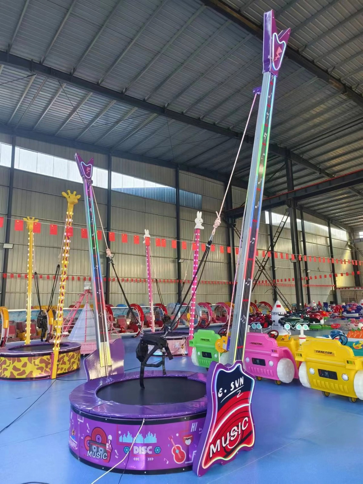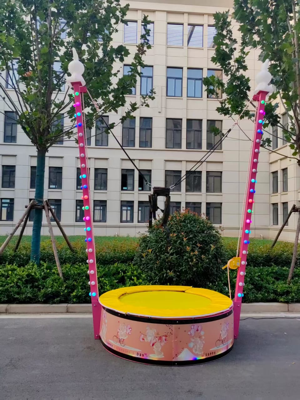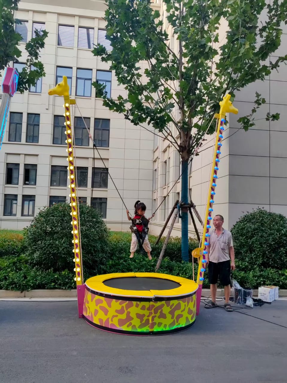 Step into a world of colour and excitement with our LED Trampoline, a crowd-pulling attraction that lights up the night. Designed with tall, glowing giraffe structures and vibrant LED strips running from top to bottom, this trampoline transforms every bounce into a magical experience.
