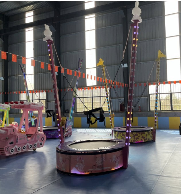 Children jump in a safe, enclosed space surrounded by playful animal-themed panels, while the bright neon lights create a fun, futuristic atmosphere that instantly grabs attention. Perfect for carnivals, theme parks, night markets, or family festivals, this LED trampoline brings energy, movement, and visual magic that parents and kids love.