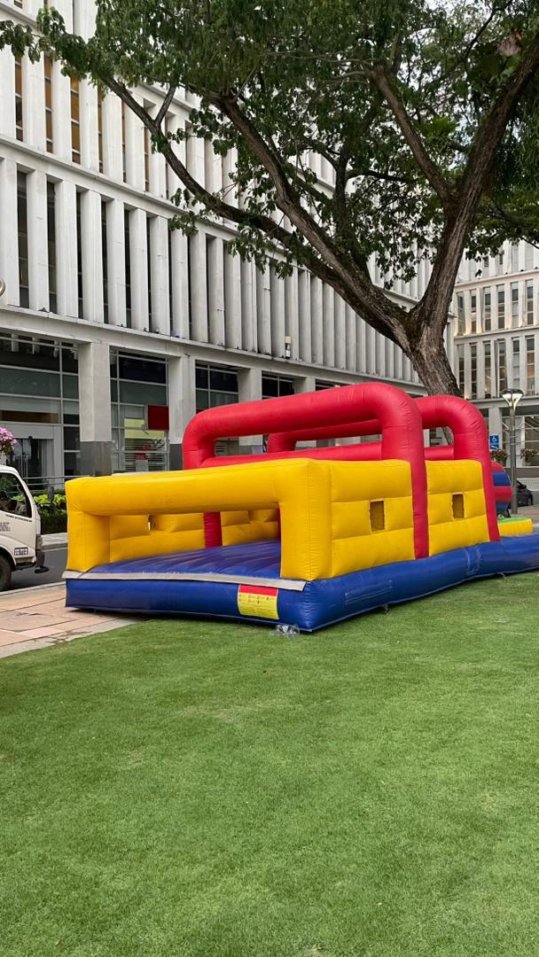 This inflatable meet European Safety Standard EN 14960 : 2013. Its 4 course challenge combination of holes, climbing, pool of ball and obstacles. Very suitable for kids, teenager.
