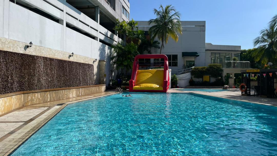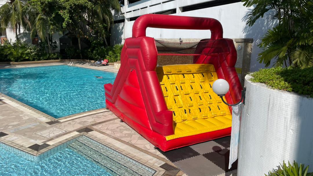 This inflatable meet European Safety Standard EN 14960 : 2013. Its a big climb and big slides. Very suitable for teenager and young adult. Can be used into swimming pool for extra splash and fun.